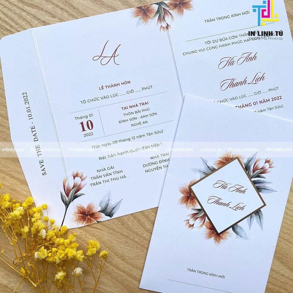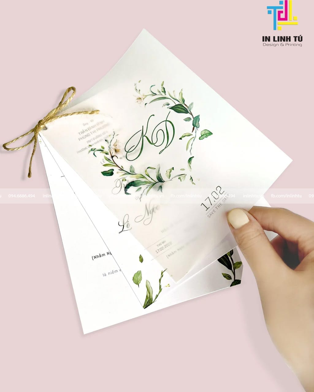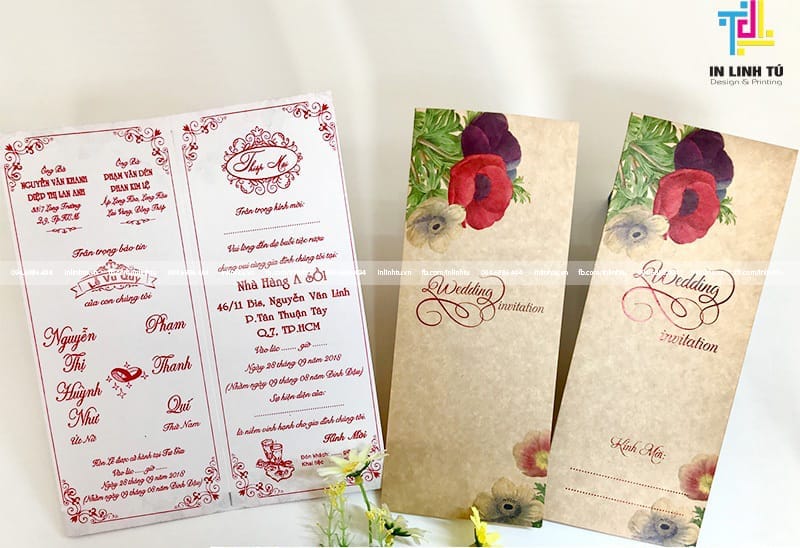 Khi mở ra, thiệp sẽ có kích thước khoảng 24×20 cm, phù hợp cho những ai thích sự nhỏ gọn nhưng vẫn đầy đủ thông tin.