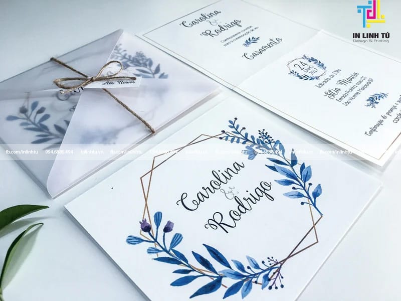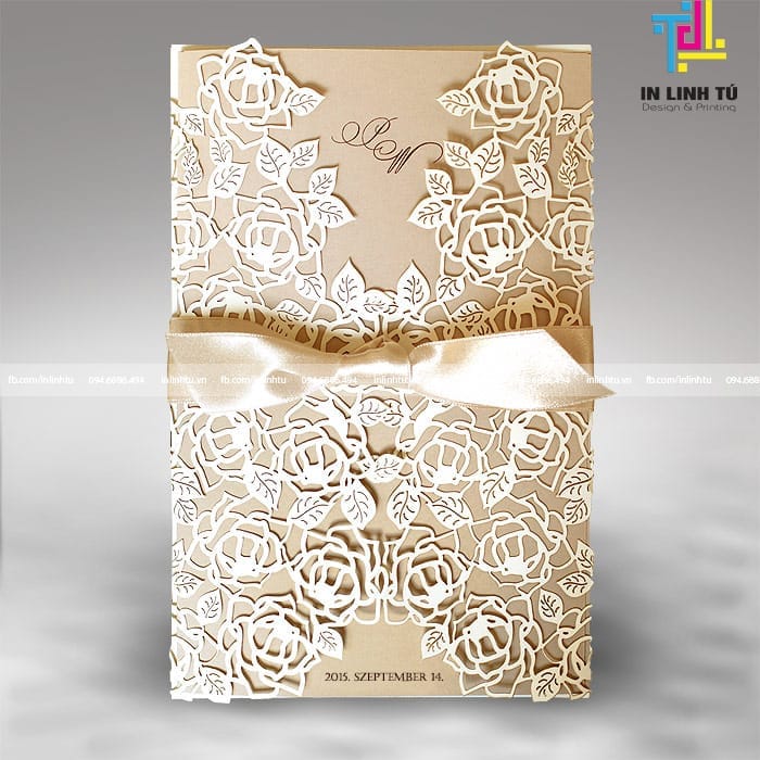 Phong cách sang trọng và thanh lịch: Thiệp cưới gấp 3 thường được làm từ chất liệu giấy cao cấp, kết hợp với các chi tiết trang trí tinh xảo, tạo nên vẻ ngoài sang trọng và thanh lịch.